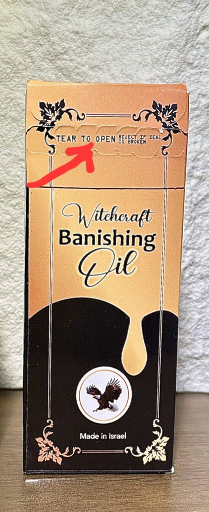 Note: The Authentic Witchcraft Banishing Oil has an Eagle Logo on the pack and you need to tear the pack yourself to open