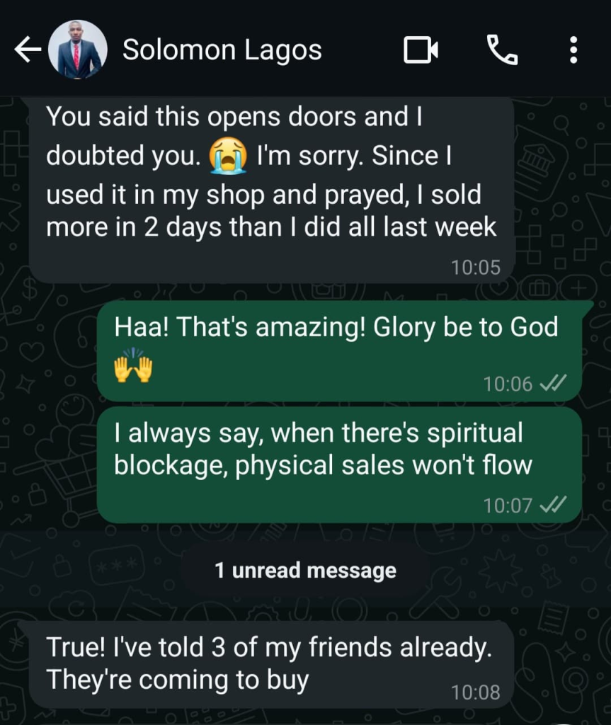 Don’t let years of hard work go to waste because of unseen forces working against you. Witchcraft Banishing Oil is your divine weapon—use it to protect yourself, your family, and your business. Take charge of your spiritual atmosphere and walk in victory, favor, and freedom!